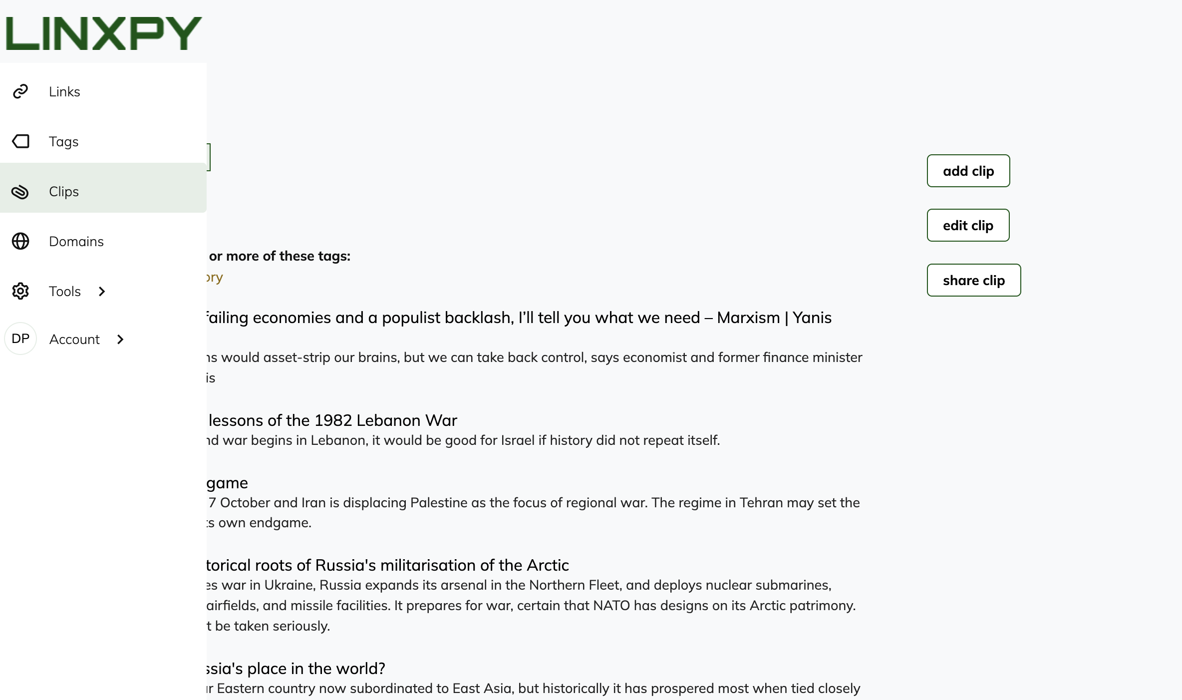 Linxpy is a “human-machine symbiosis for professional curated bookmarks, powered by a serendipity engine”. Currently, they are in the alpha stage. You can add links, tags, and create clips, which are a list of links around a topic. These clips can be shared via other mediums.